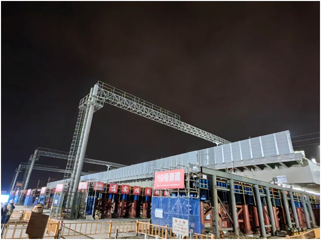 为处理施工难题,拓展城市成长空间、办事村落复兴计谋,“手艺门槛高、平安风险大、功课窗口期短,全程告竣“稳顶升、准移位、快跟尾”,如许的施工效率正在保守模式下难以实现,上海先为土木匠程无限公司研发了18套快速同步持续顶推设备、36套纠偏滑移安拆等公用安拆。